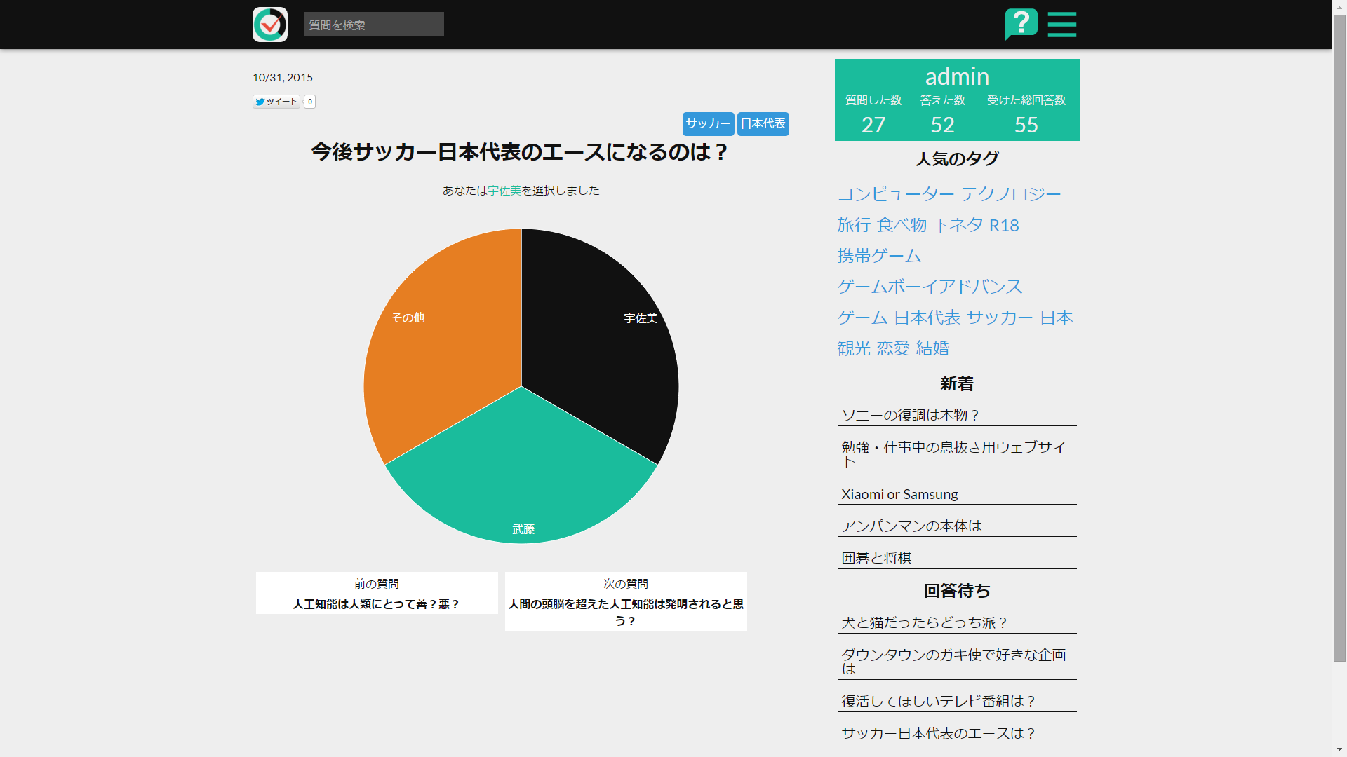 手軽に世論調査ができるという発想はいいが、まだ最低限の機能しか実装されていなく、要所要所でまだ機能的に物足りないところがある。今後機能を増やして伸びてほしい!