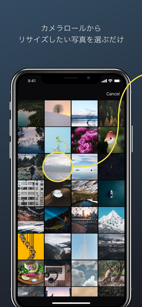 - カメラロールから写真を選んで直感的にサイズ変更