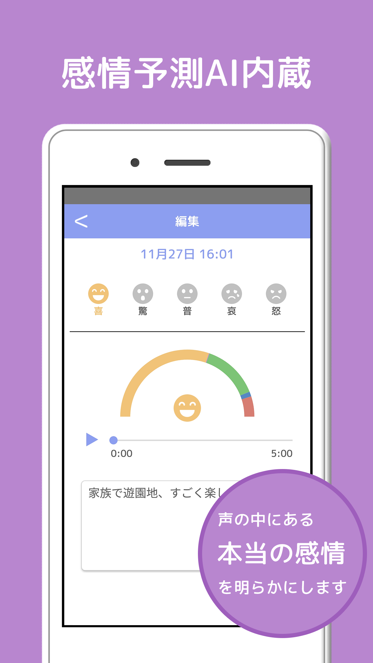 感情を予測するAI、EPA(Emotion Prediction Analysis)が内蔵されています。第三者の目で自分を見つめてみませんか?