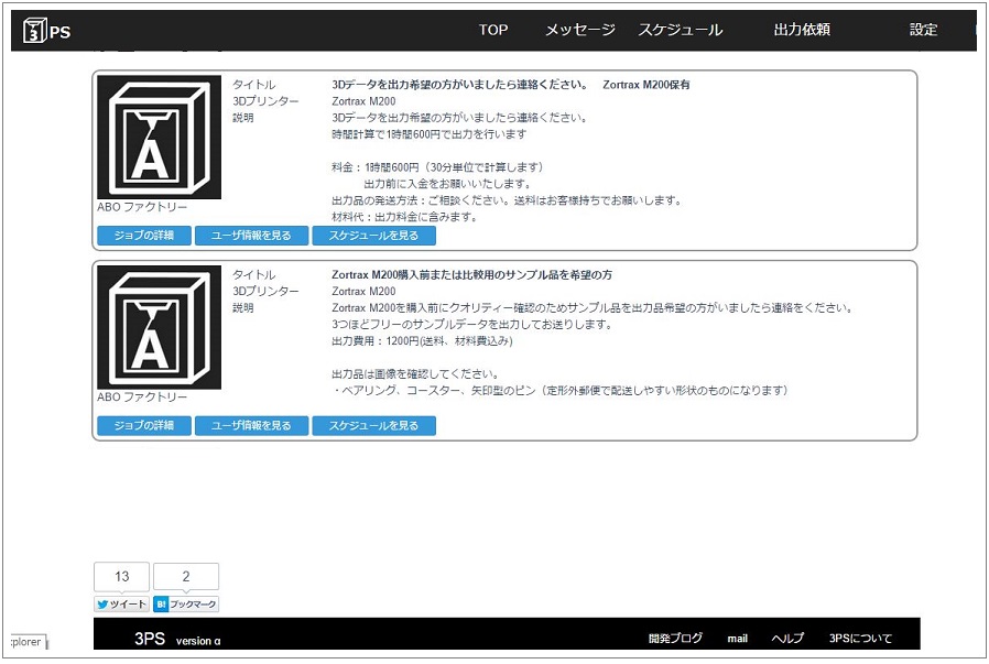 3PSは個人間で3Dプリンターを共有して、物づくりを楽しむためのサービスです。3Dプリンターを持ってるけどあまり利用していない・・・・ 3Dデータを出力してみたいけど3Dプリンターを持っていない・・・・このユーザーをマッチングさせ、ユーザー間でデータを出力しあいます。また、出力に必要な費用はこユーザー間で決めてもらいます。