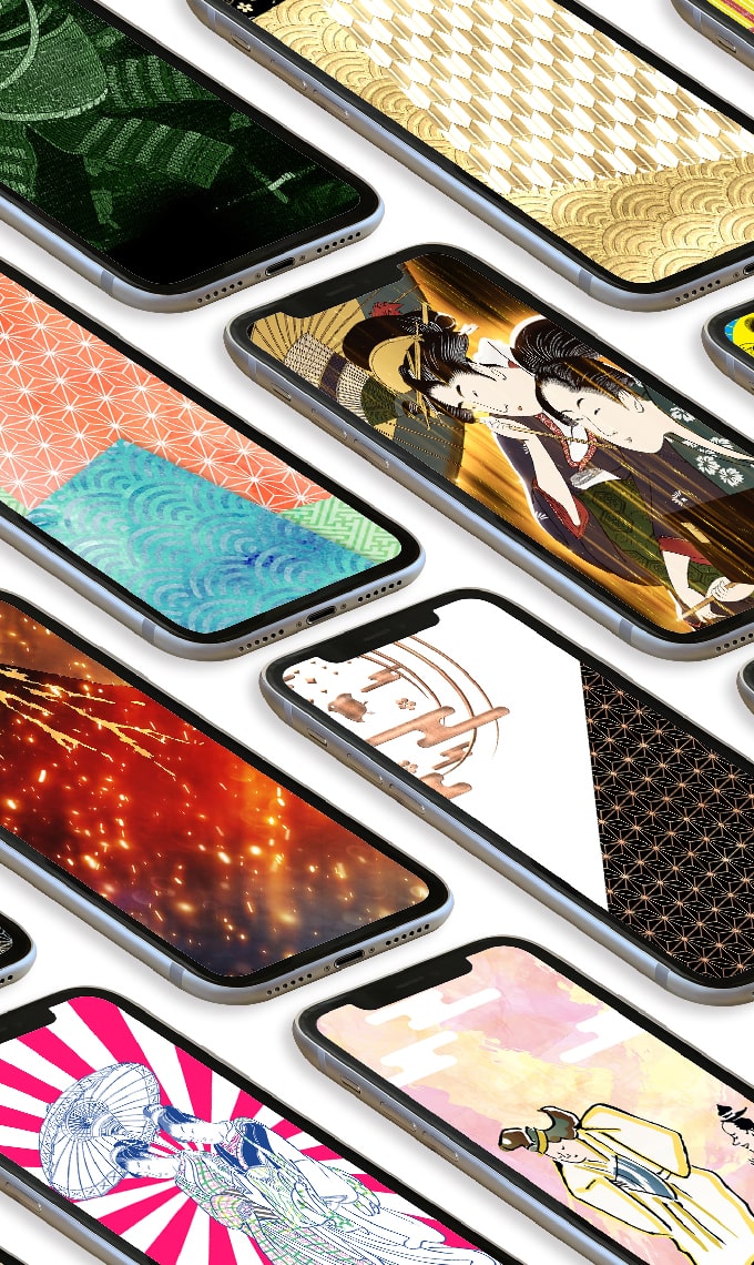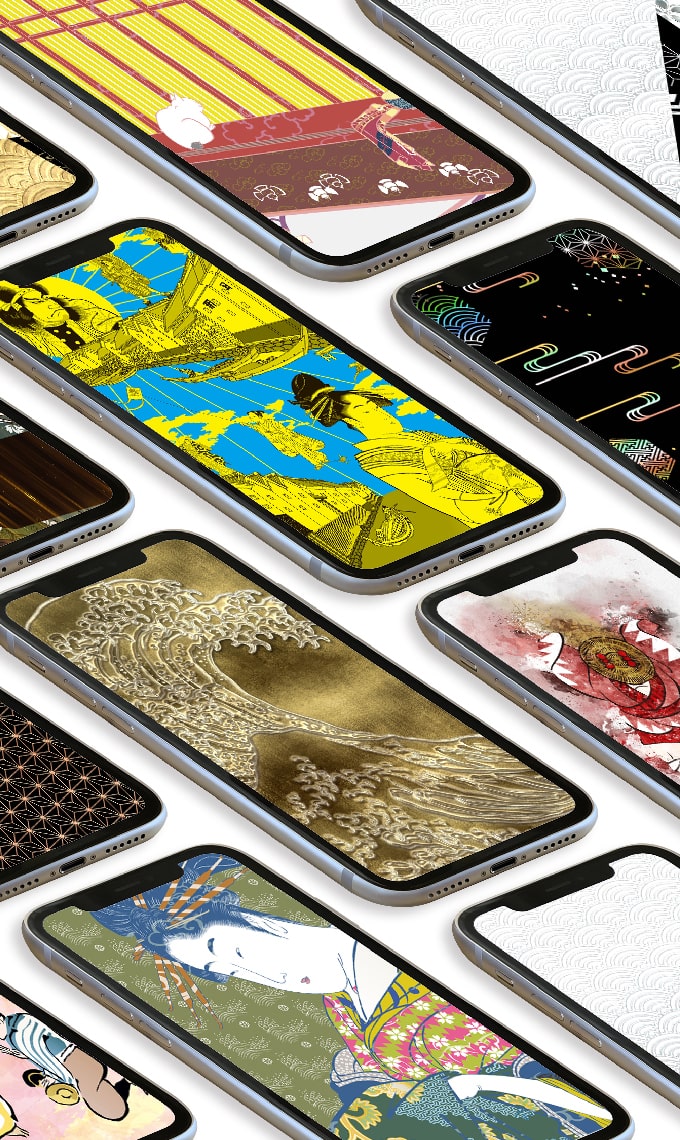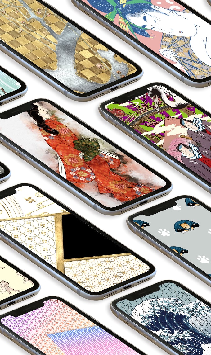 葛飾北斎、喜多川歌麿、東洲斎写楽、歌川国芳などの人気浮世絵をデジタル技術で鮮やかに仕上げ直した壁紙も多数。