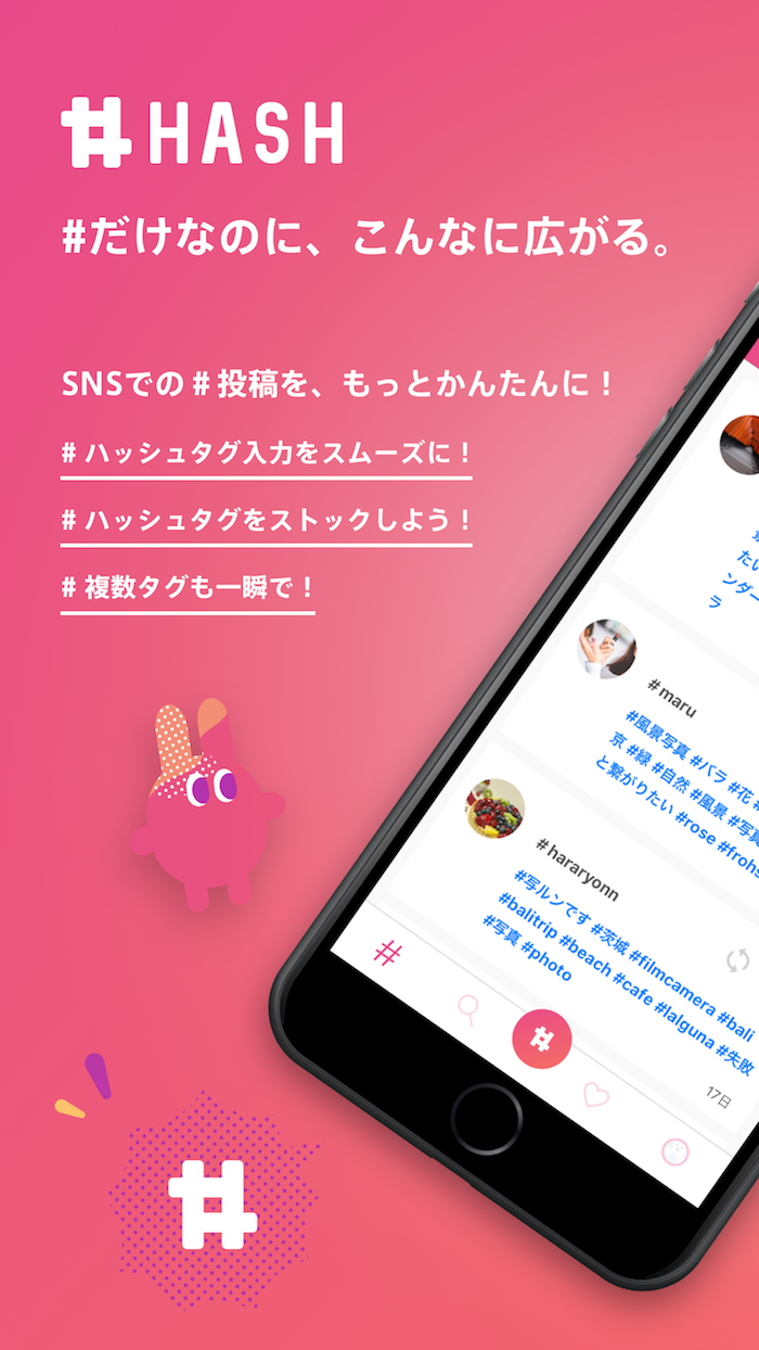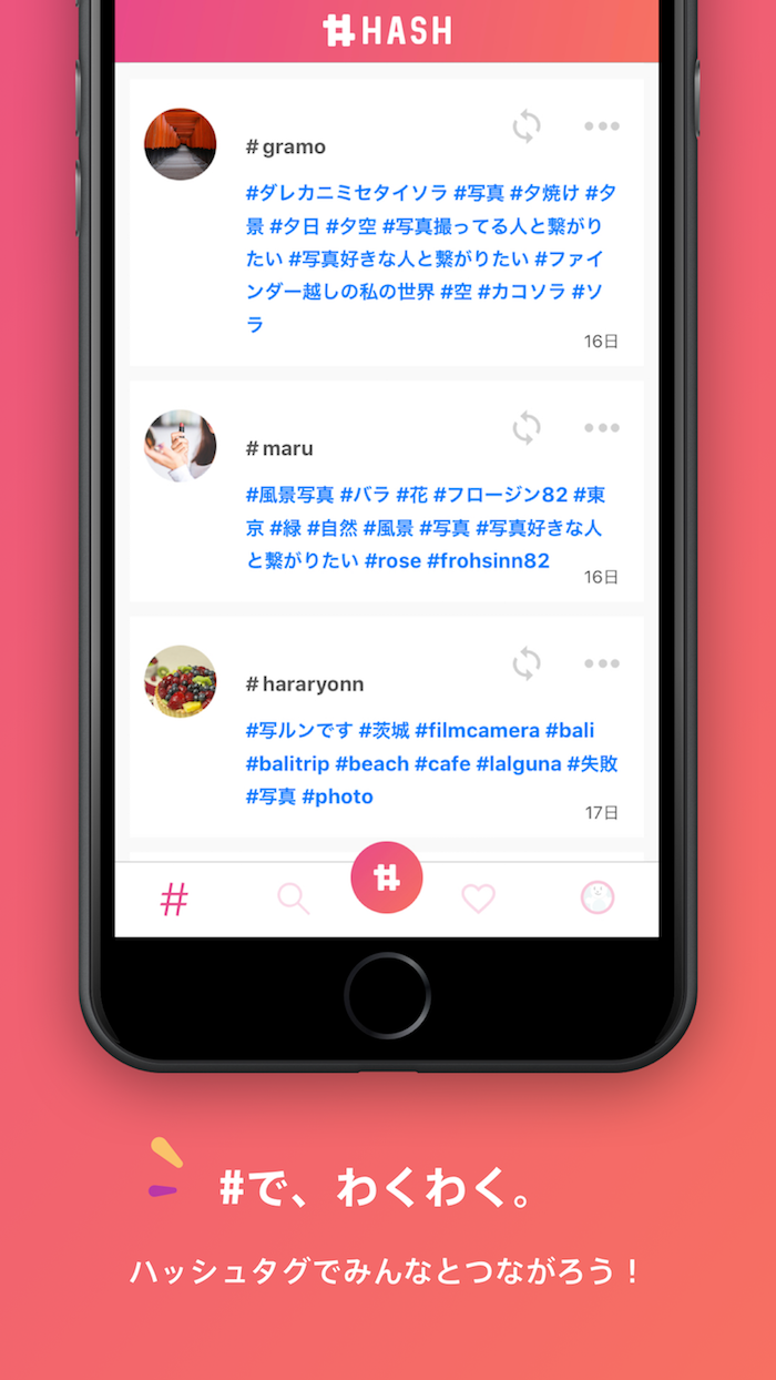 「HASH(ハッシュ)」は、ハッシュタグをかんたんに作成して共有できるコミュニティです。