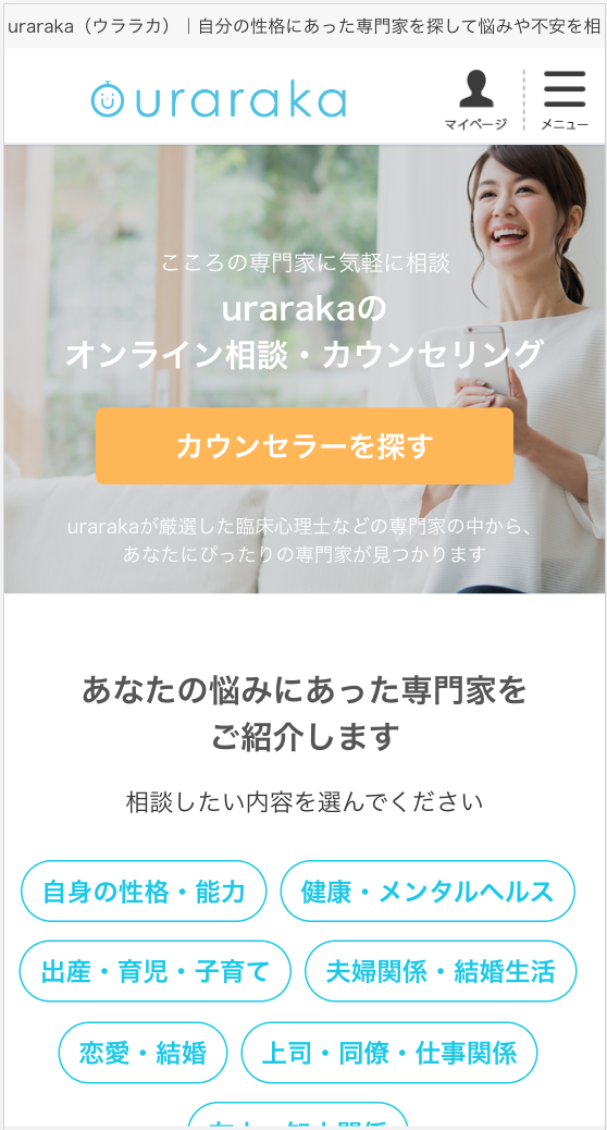 urarakaは、臨床心理士などの専門家に、匿名で悩みや不安を相談できるオンラインカウンセリングサービスです。