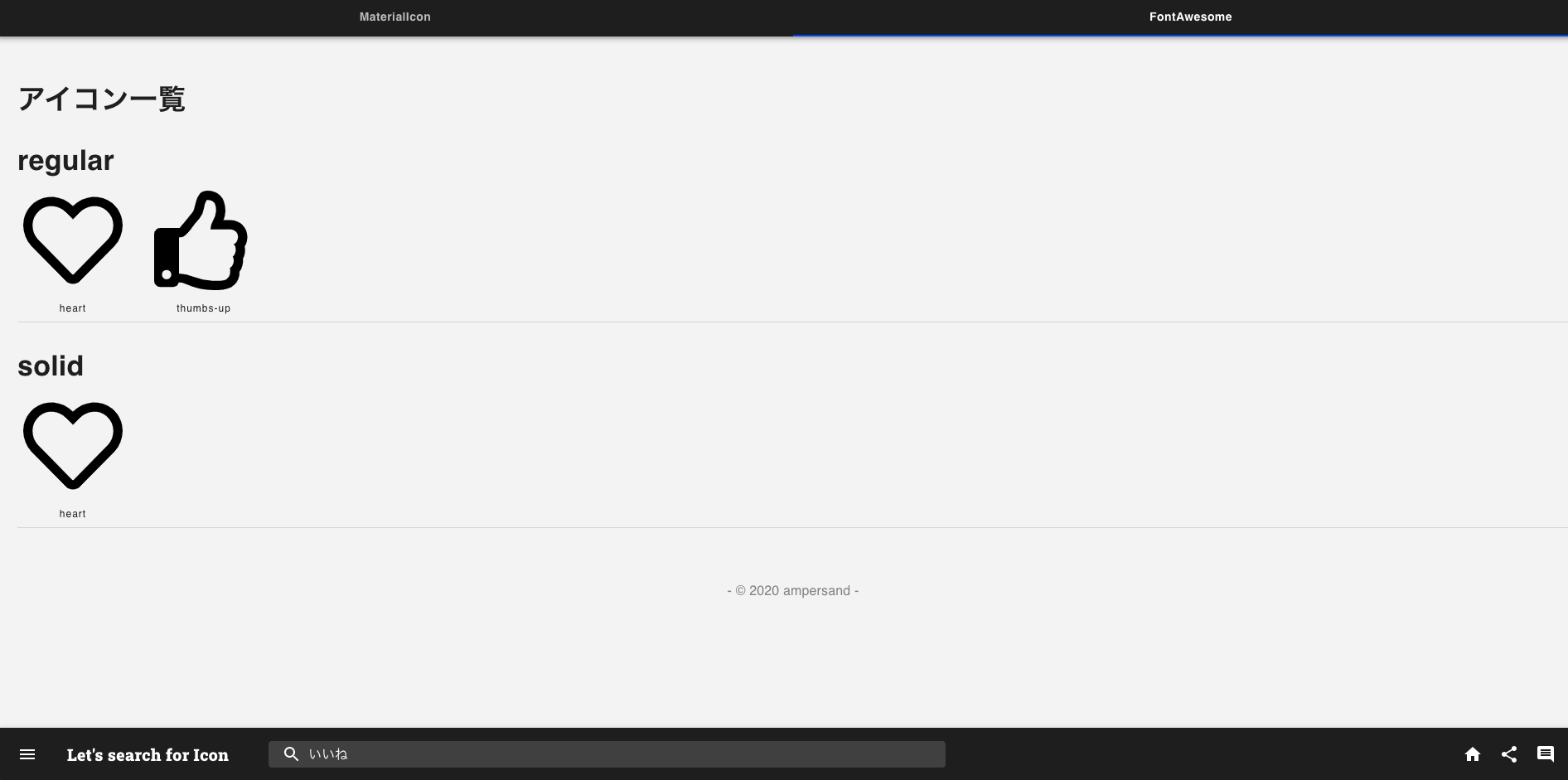Let's search for IconはマテリアルアイコンとFontAwesomeアイコンを特徴で探せるアプリです。