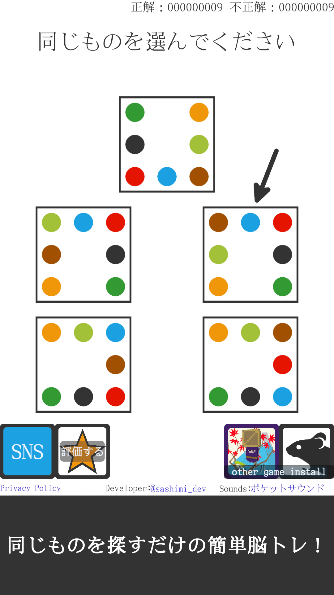 表示された絵と同じものを選択肢から選ぶシンプルな脳トレです。