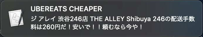 UberEATSで配送料が安くなったときに通知をしてくれるツールです。