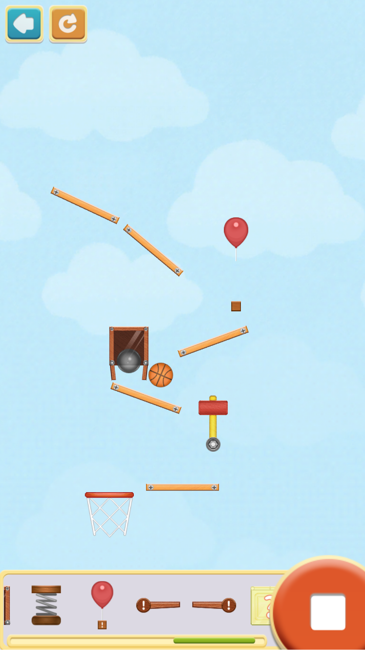 パーツを配置し、ボールをゴールに導いてシュートする、物理パズルゲームです。