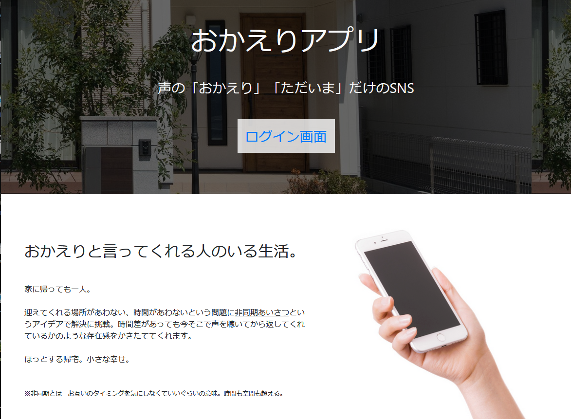 声の「ただいま」「おかえり」だけのSNSです。