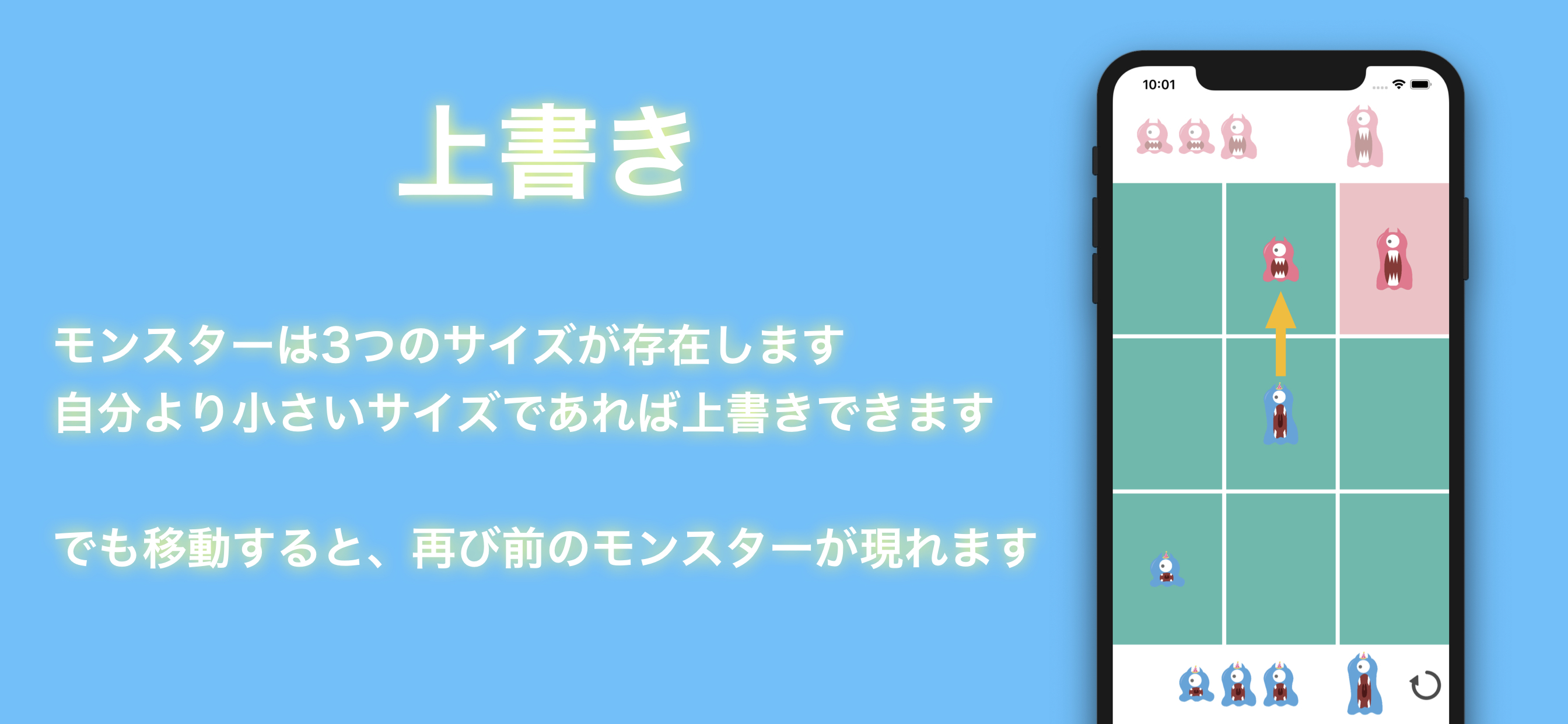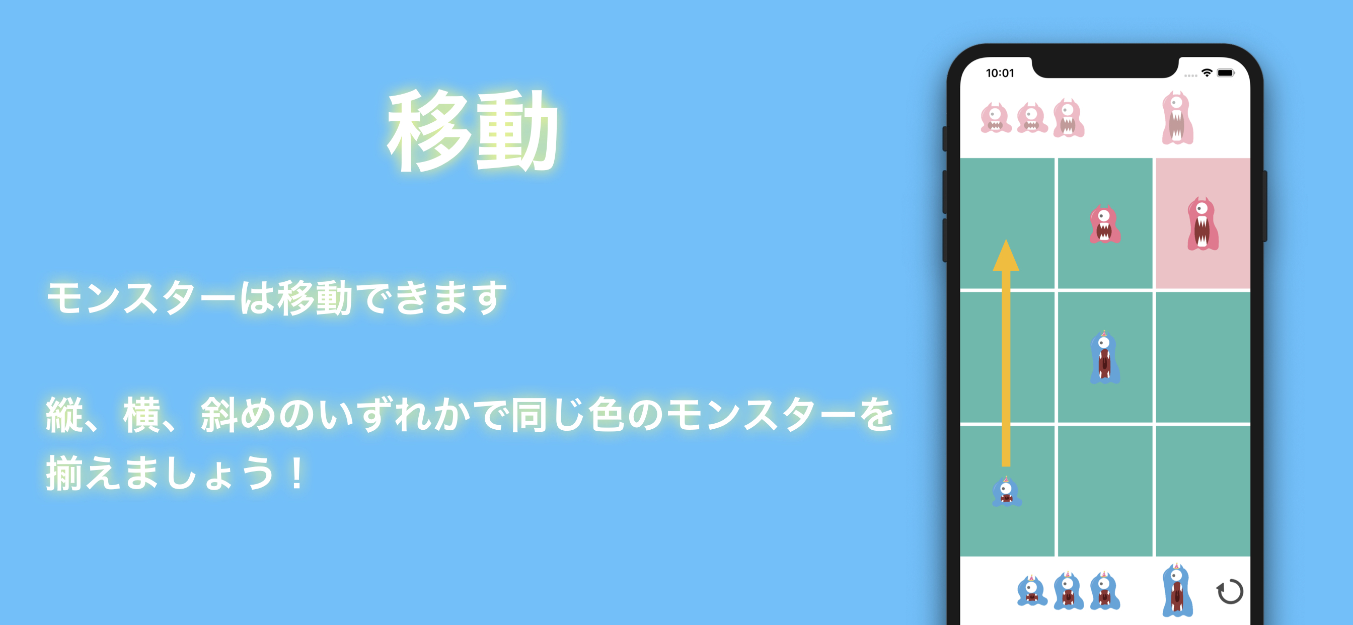 既に配置したモンスターも移動可能です。
