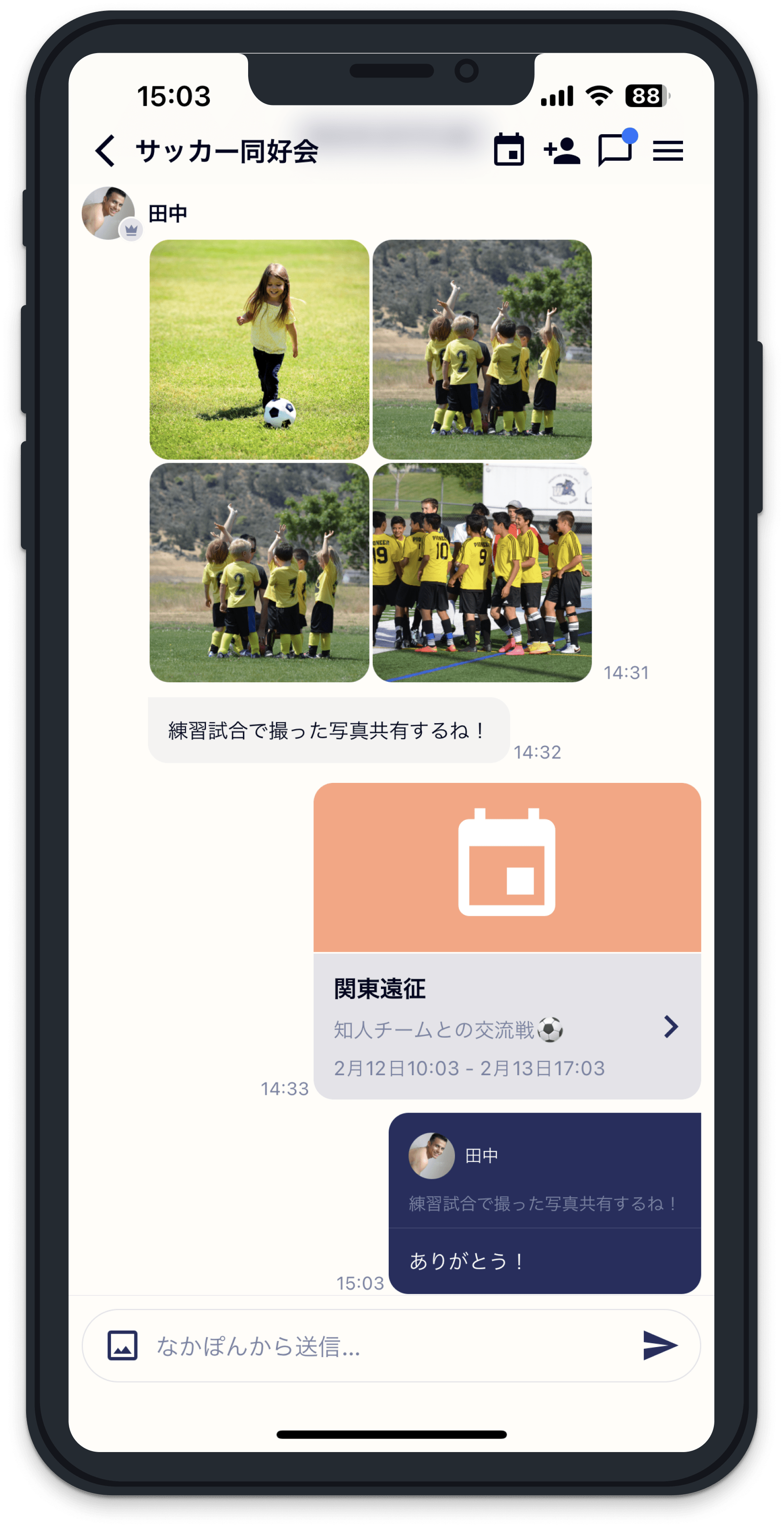 ■ 【サブチャット】の<幹事メンバー>で練習試合や合宿の相談