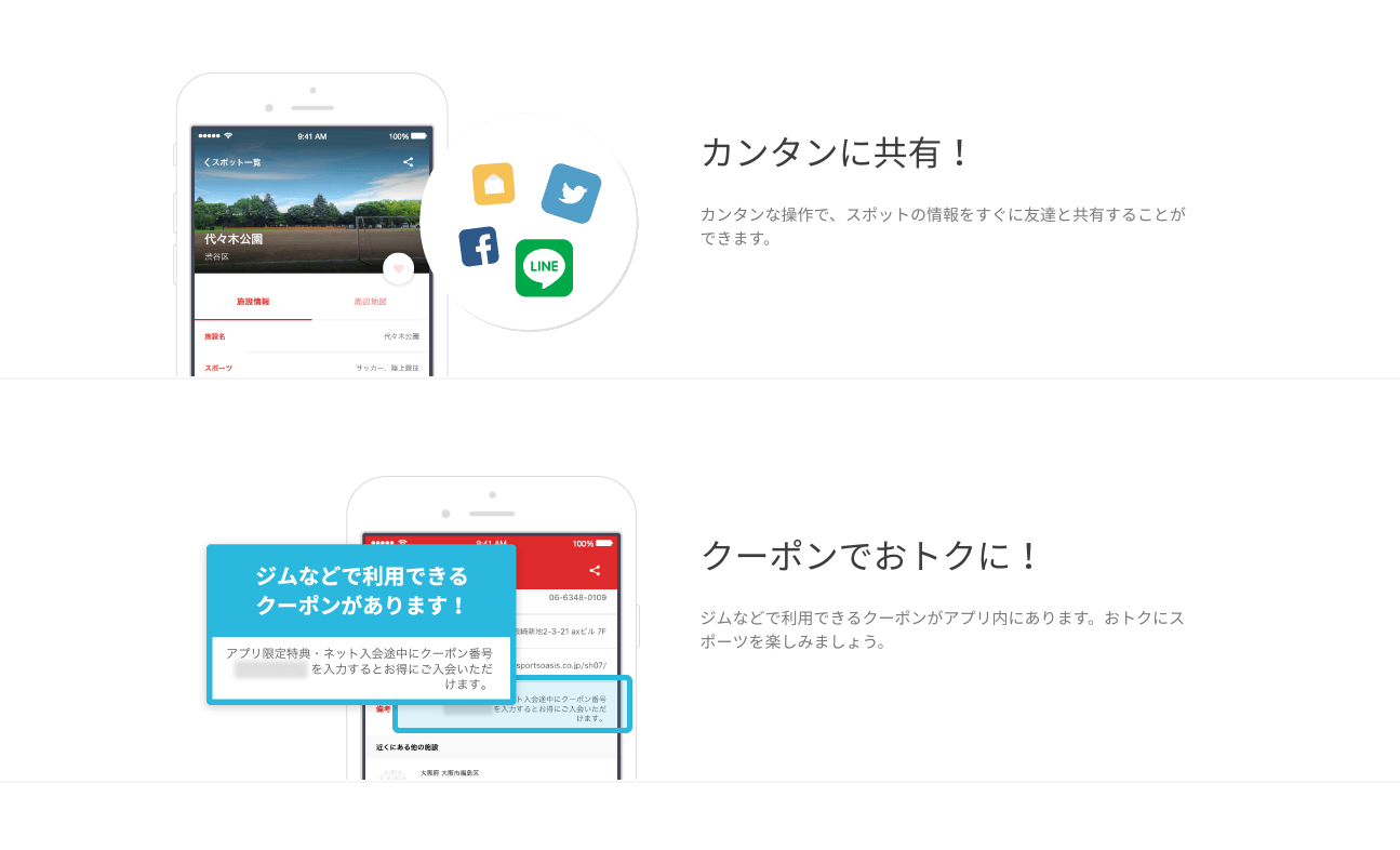 ジムなどで利用できるクーポンがアプリ内にあり、おトクにスポーツをお楽しみいただけます。