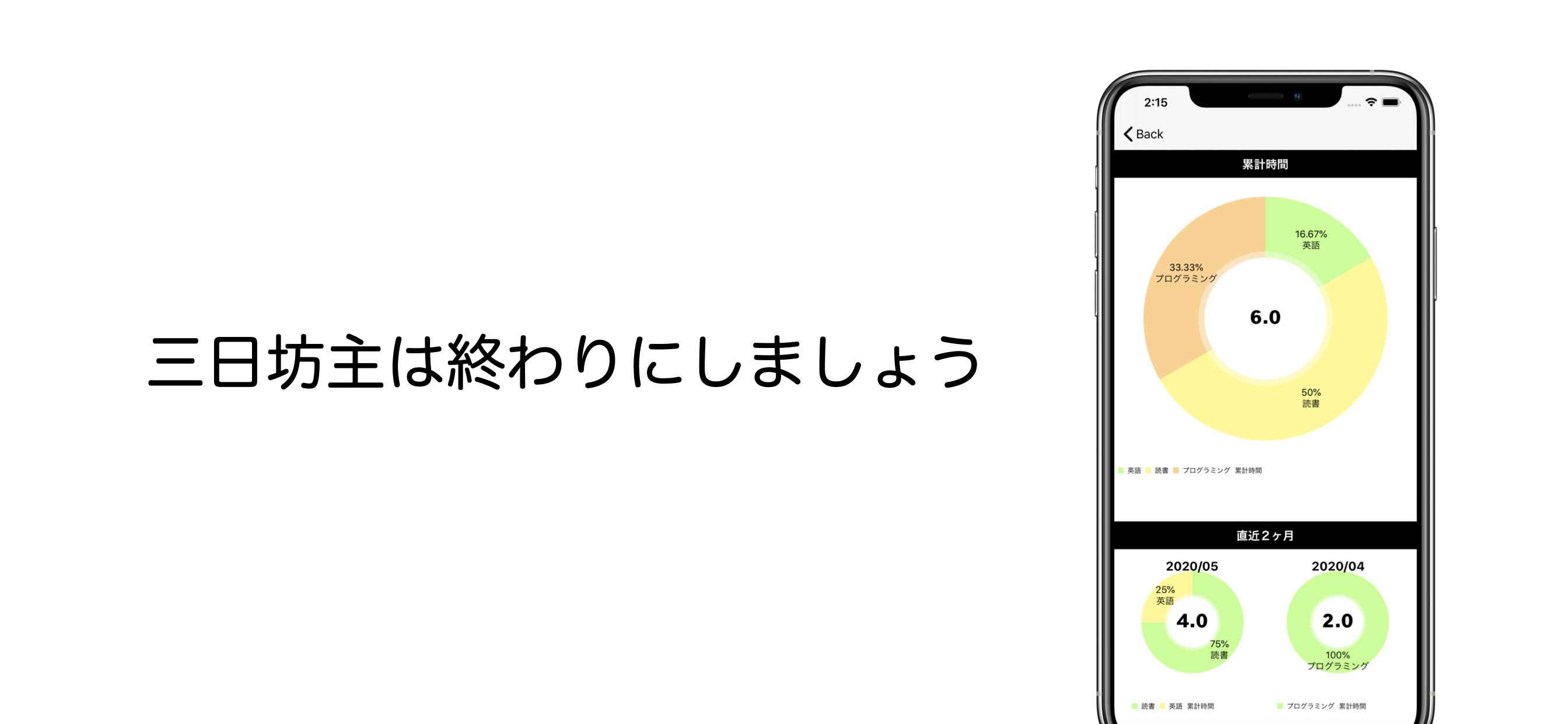 積み上げの累計時間や内容をグラフで確認することができます。
