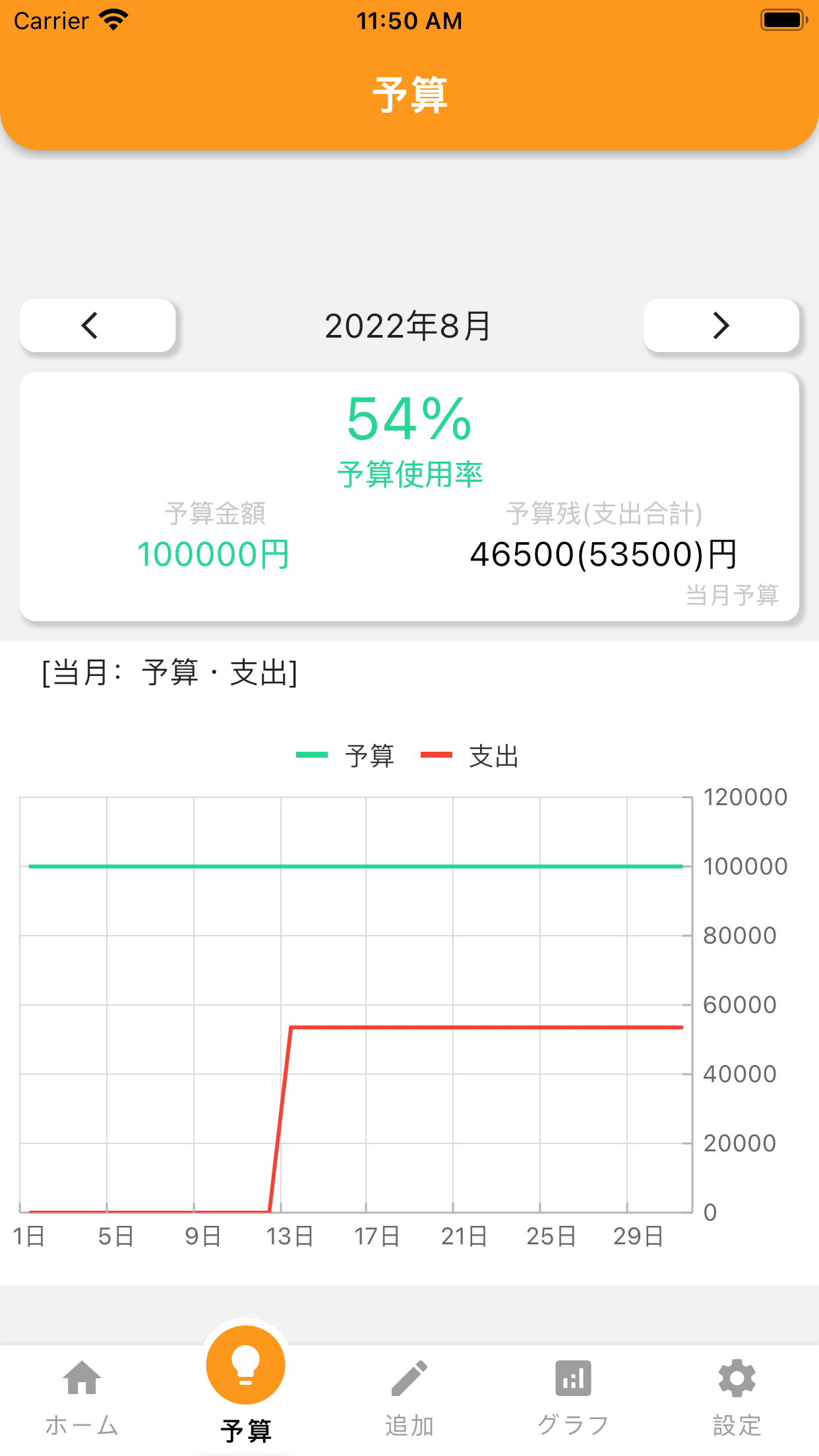 毎月の予算を決めて今月は後どのくらい使えるのかが簡単に把握できます