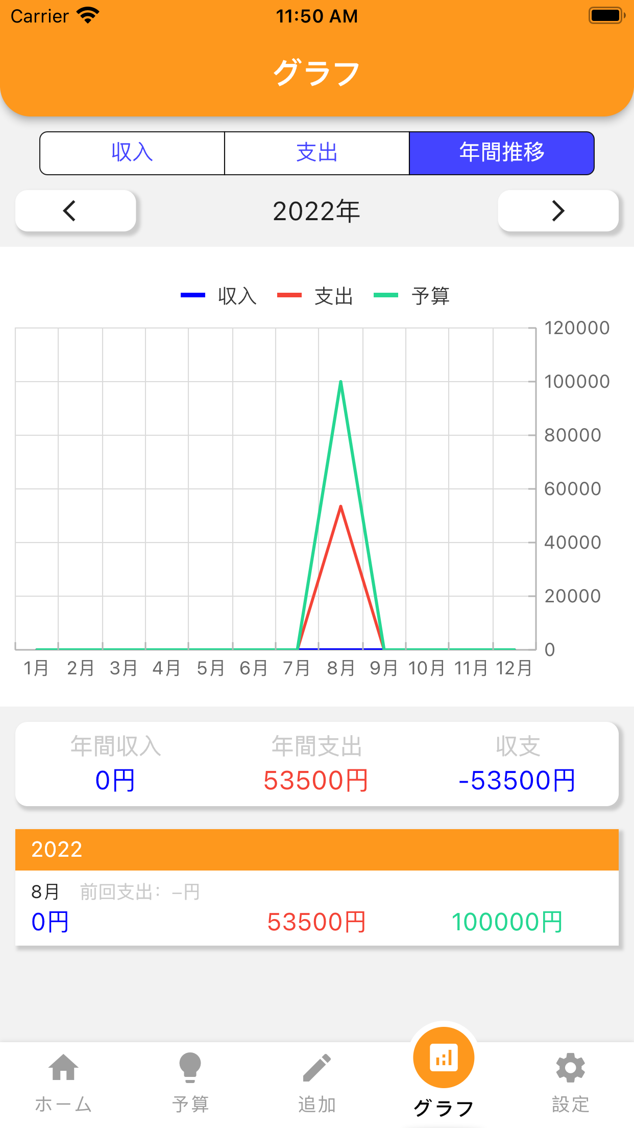 収入、支出、予算とそれぞれの年間推移をグラフで視覚的に分かりやすく分析できます