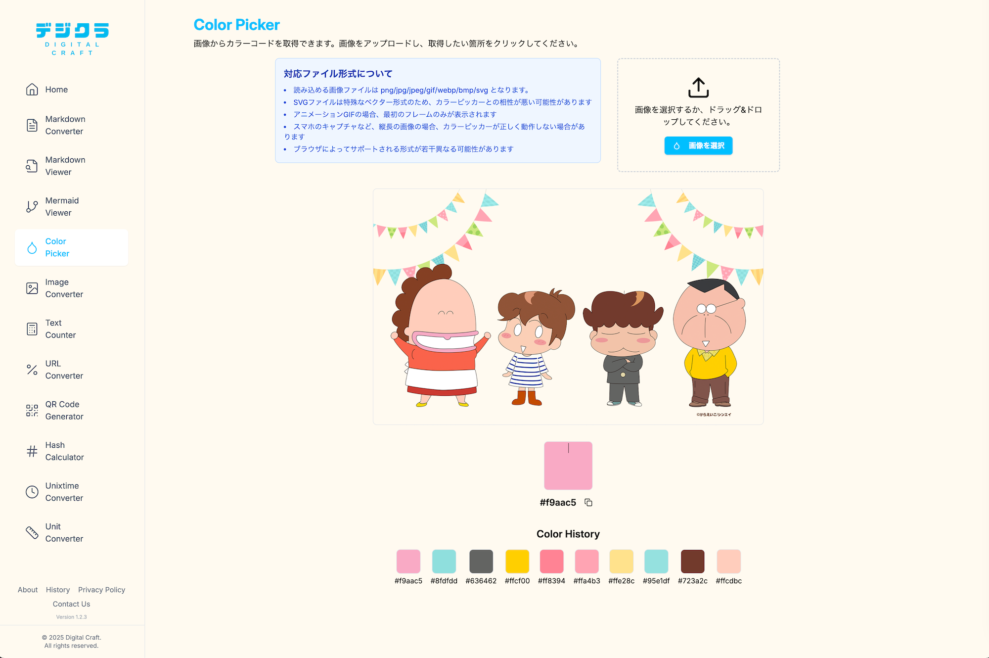 - 画像からのカラーコード抽出機能