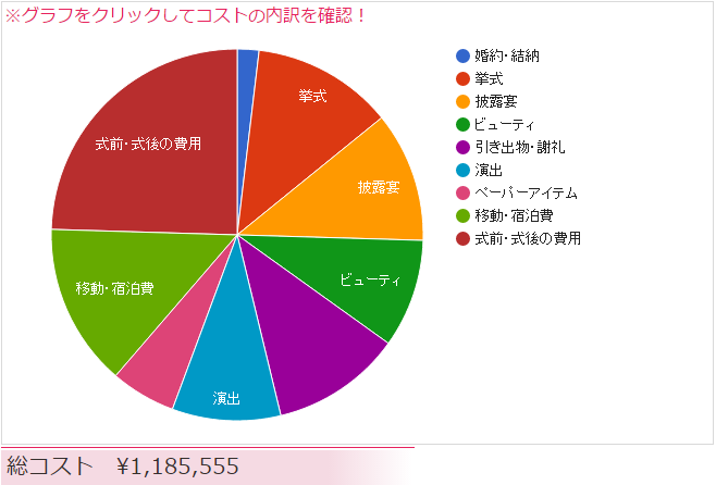 結婚式にかかる費用を、グラフでかんたんに確認できる結婚式に特化した家計簿のようなツールです。