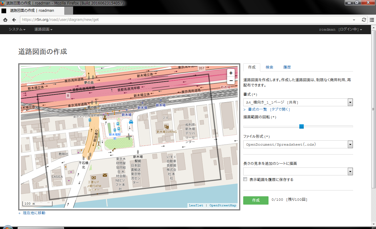 roadmanは、国土地理院の地図情報から工事用の道路図面を生成するWebサービスです。作業帯図や道路規制図などを簡単に美しく生成できます。