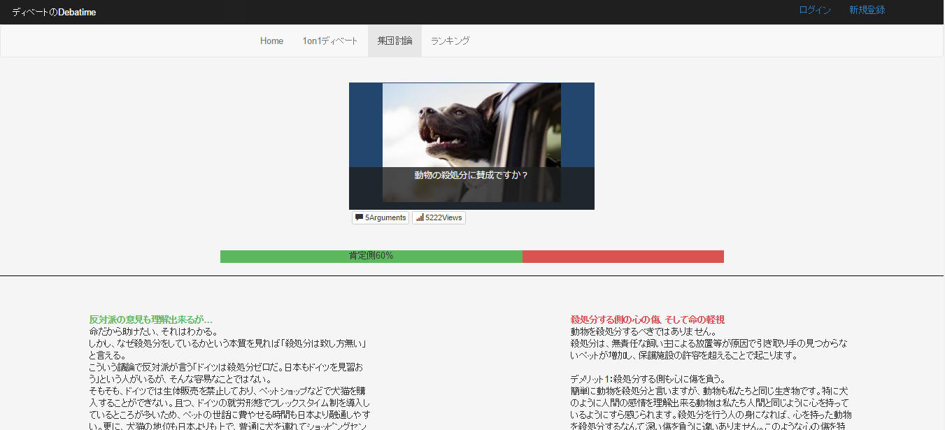 オンラインでディベート出来るwebサービス「Debatime」です。