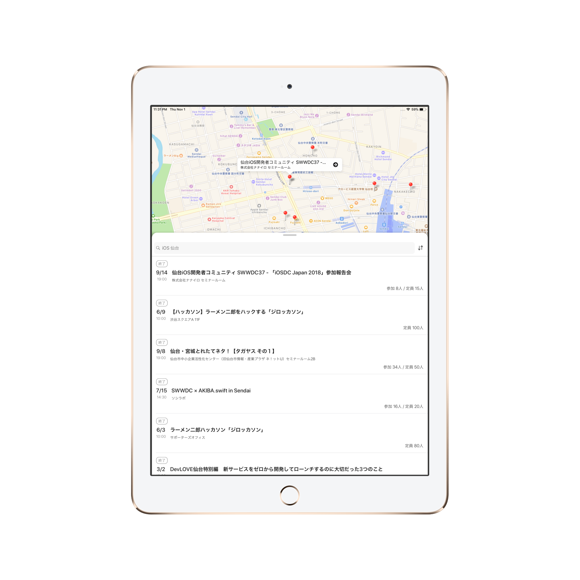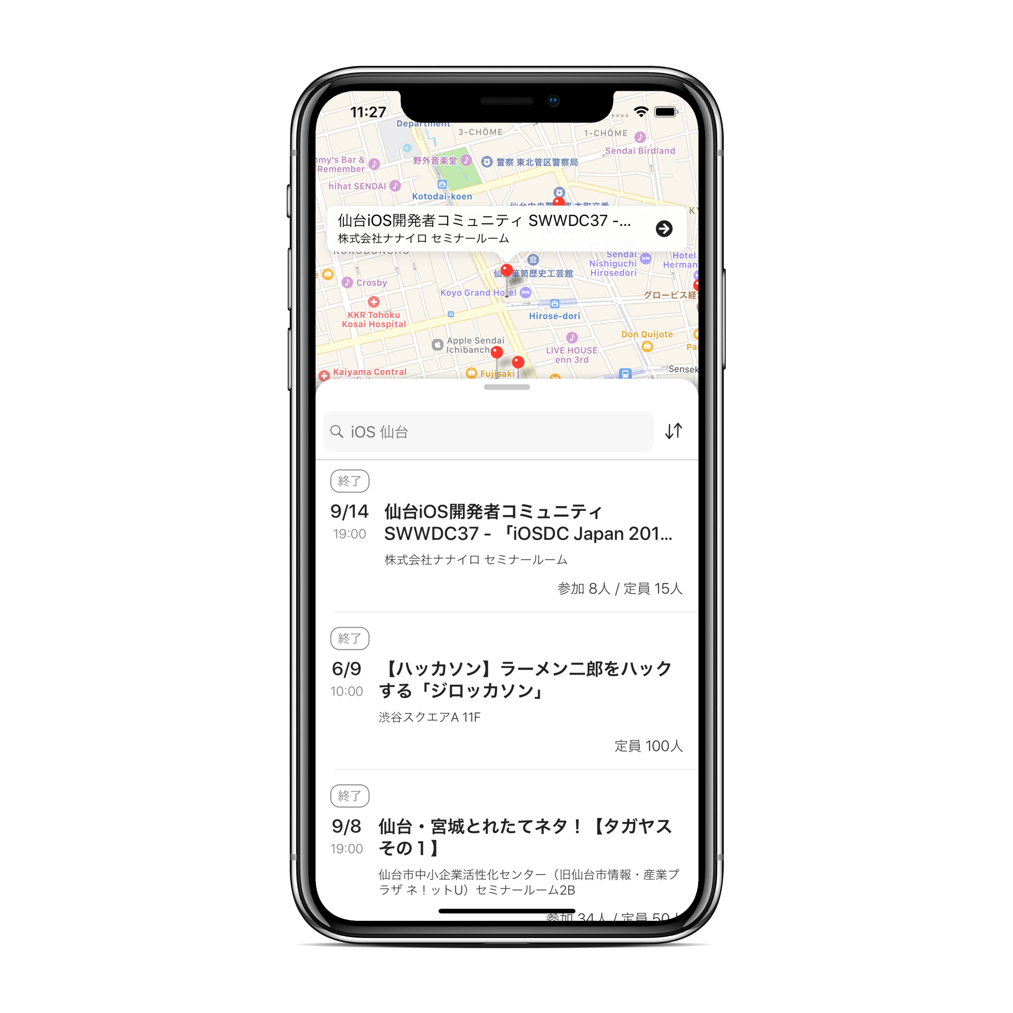 - 地図と連動したイベント検索(現在はiOS版のみ対応)