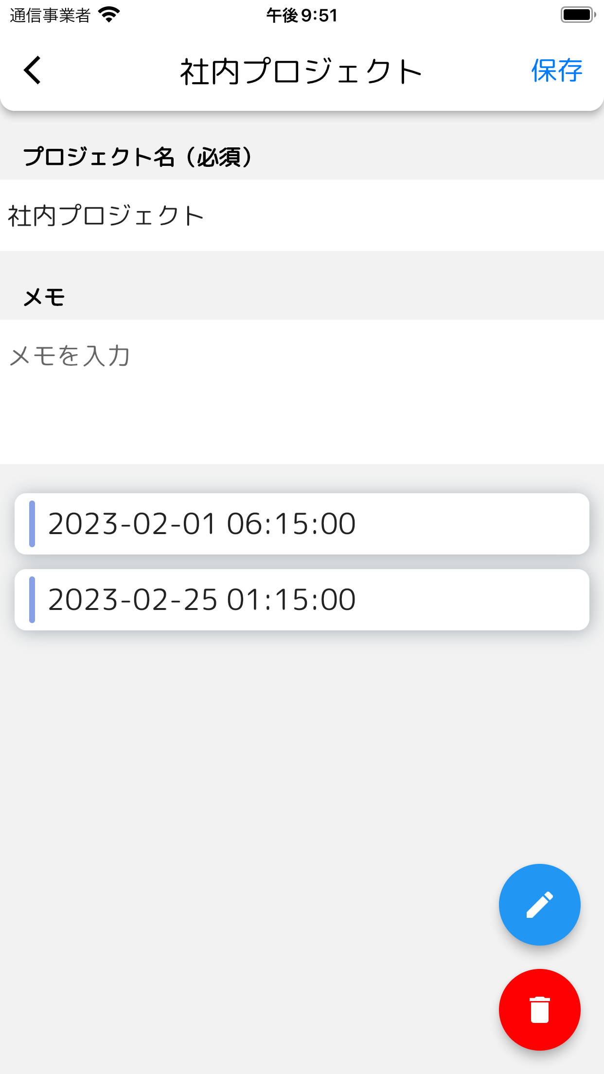 作業時間のタイマーによる自動管理、または手動で管理もできます。作業時間の履歴の確認ができます。